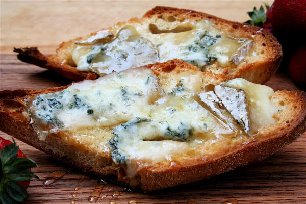 And while I mentioned that we stopped by the Birchrun Hills Farm stand at the Sunday Headhouse Farmers’ Market, I forgot to mention that we all enjoyed a wedge of Birchrun Blue with our hors d’ouevres the previous evening. Sue Miller makes this creamy blue cheese from raw milk drawn from the cows on her dairy farm in Chester Springs. I recently visited her beautiful farm, met many of her precious cows and learned about the intensive cheese-making process. I also learned that a snack Sue makes — melted Birchrun Blue over a toasted baguette drizzled with honey — has been named “Sweet Sue” by one of her neighbors.