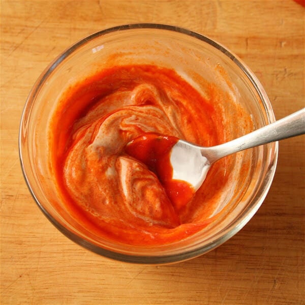 - Mix sriracha with sour cream according to taste.
