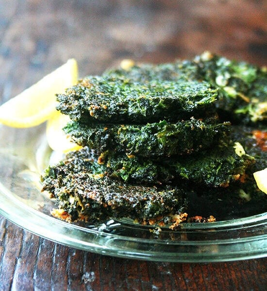 - Heat 2 tablespoons of oil in a large sauté pan — I prefer to use my nonstick skillet for these — over medium-high heat. When oil is hot, spoon in 1 heaping tablespoon of the fritter batter (you should be able to fit 5 to 6 fritters per batch). Press down gently on each fritter to flatten. Cook 1 to 2 minutes per side, until golden brown, seasoning each side with salt. I find that using two forks to flip is easier than a spatula. Transfer the cooked fritters to a plate lined with paper towels. Repeat with remaining batter, wiping out the pan and adding fresh oil as needed. Serve warm, with lemon wedges (optional).