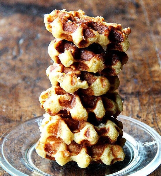 - Preheat the oven to 250° (or don’t — they taste good at room temperature). Preheat a Belgian waffle iron and brush it with melted butter. Gently stir the batter to deflate. Using about 2 tablespoons of batter for each, cook the waffles according to the manufacture’s directions until they are golden and crisp; brush the waffle iron with melted butter as needed. Transfer the waffles to plates or keep them warm in the oven, then serve.