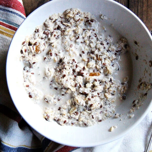 I learned how to make Bircher muesli many years ago from a tired, talented French man named Chef Pasche, who was working a second job as an instructor at the culinary program I was attending in South Philly. Named after a Swiss doctor, Maximilian Bircher-Brenner, Bircher muesli essentially is a mix of raw oats, nuts, seeds, and dried or fresh fruit soaked in milk.