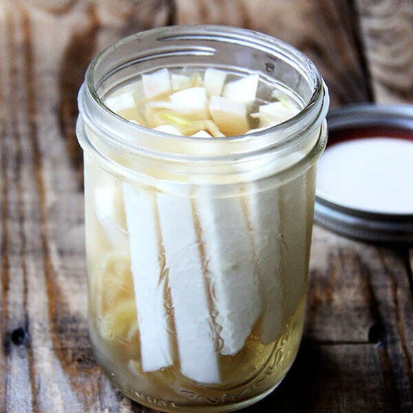 I have used this quick-pickle method for carrots, watermelon radishes, and now kohlrabi — so good!