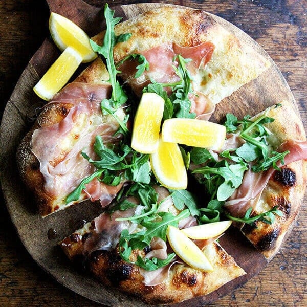 Feel free to use your own dough recipe or store-bought dough. This recipe halves well, too. This is very similar to one I made over on the Baking Steel blog a few years ago: Arugula, Prosciutto, and Pecorino