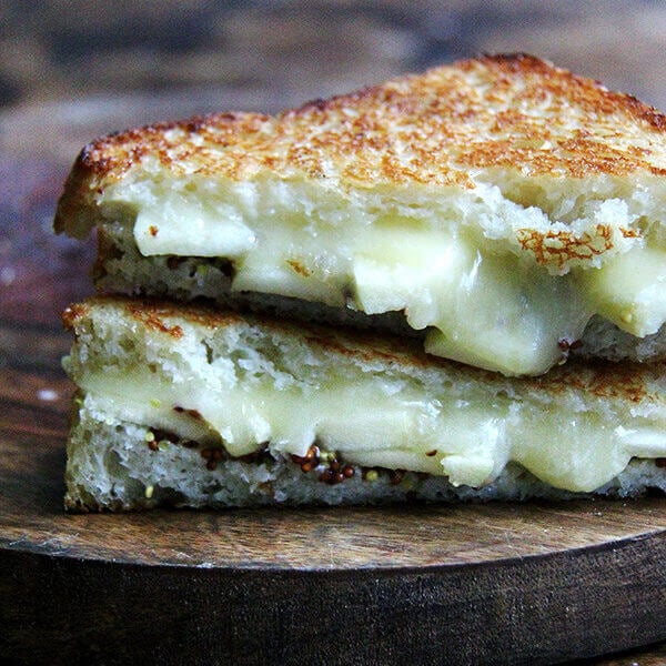 Adapted from Jenny Rosenstrach’s new book How to Celebrate Everything, every sentence of which I am relishing — seriously, I don’t want it to end. In addition to this delicious sandwich, which I’ve been making almost every night, I’ve also made the German potato salad and the crispy chickpeas, both of which were also delicious. Note: So, you know the trick of spreading mayonnaise on bread destined for the griddle or grill pan, right? Mayonnaise doesn’t burn as quickly as butter, so the bread bronzes at a nice rate, right in sync with the melting of the cheese. The trouble, I find, is that mayonnaise doesn’t give you that butter flavor. But if you use a mix of butter and mayonnaise, you get the best of both worlds. You, of course, can use all butter (or mayonnaise) if you prefer.