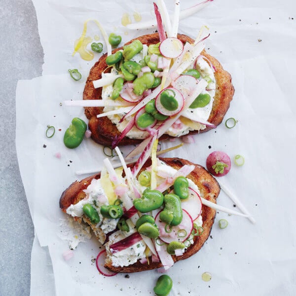 - Spread each slice of bread with ricotta and mound the endive salad on top. Serve immediately.