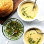 Oh.My.Word! This is the best thing I’ve made in a long time. The corn soup is nicely sweet, I was afraid I might ruin it if I added too much vinegar so I only added a teaspoon and counted on the herb salsa to do the rest. And you are right that the salsa is a must! I didn’t add cilantro because my husband doesn’t like it. It was still amazing! I’m seriously going to double the herb salsa next time just to have in my fridge for other uses. I contemplated running the soup through a sieve for a silky texture but it’s not necessary, I just made sure it was as smooth as I could get it with my immersion blender. I seriously can’t wait to make this for everyone I know. Thanks for sharing, Ali! 😀