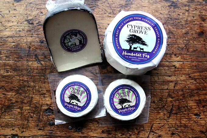 1. A selection of Cypress Grove cheeses: Pictured here: Midnight Moon (left), Humboldt Fog (so, so good) (right), Purple Haze (below)