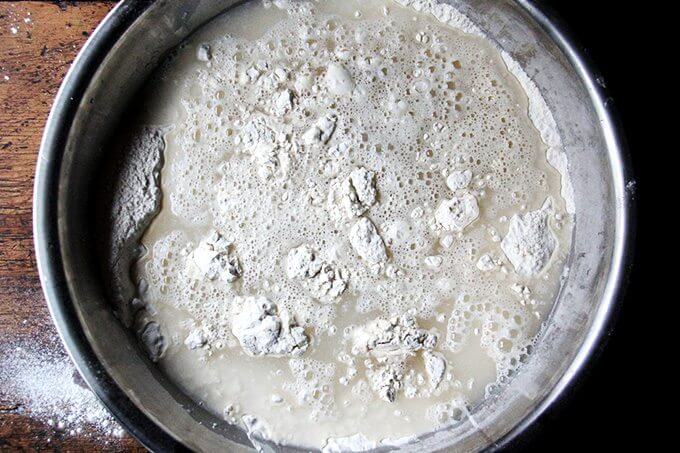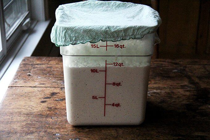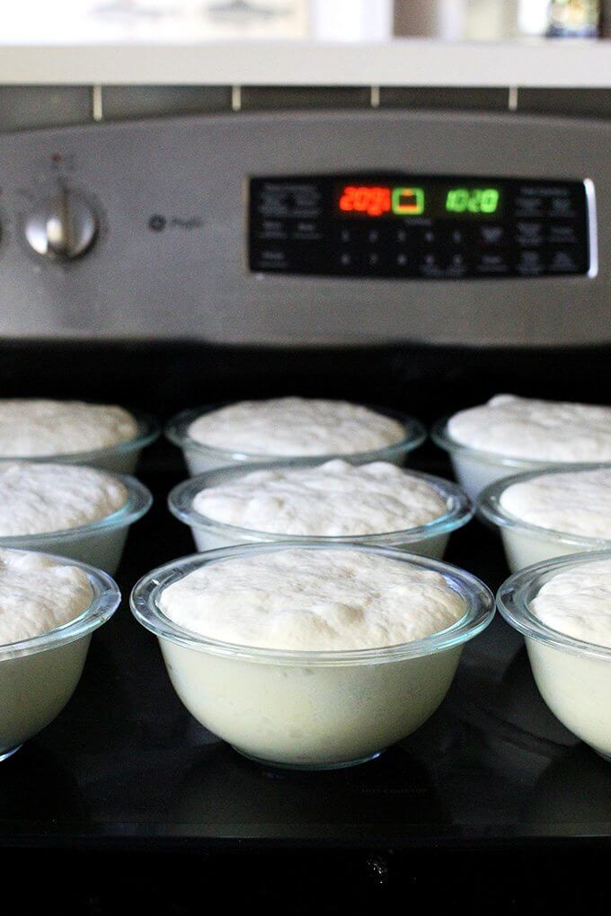 Let rise for 12 to 18 hours, portion into buttered bowls, let rise another 2 hours or until the dough creeps above the rim of the bowl, bake as directed.