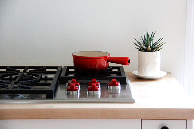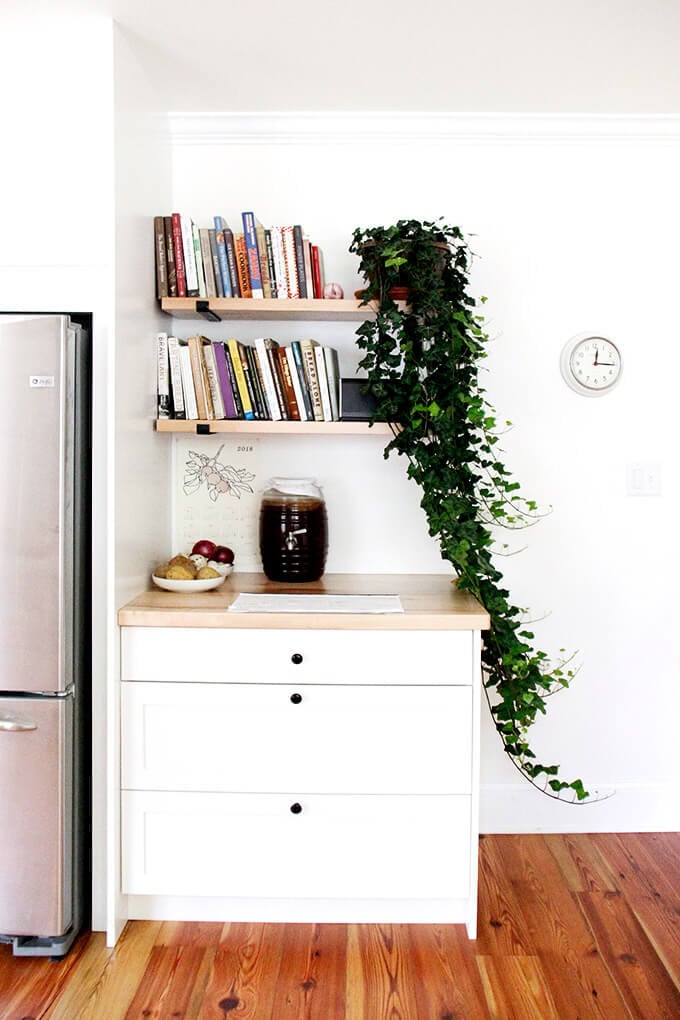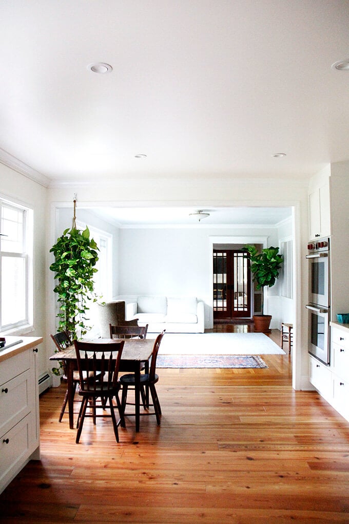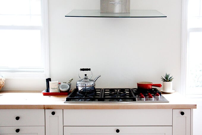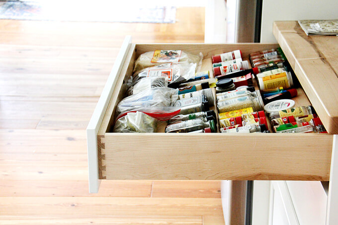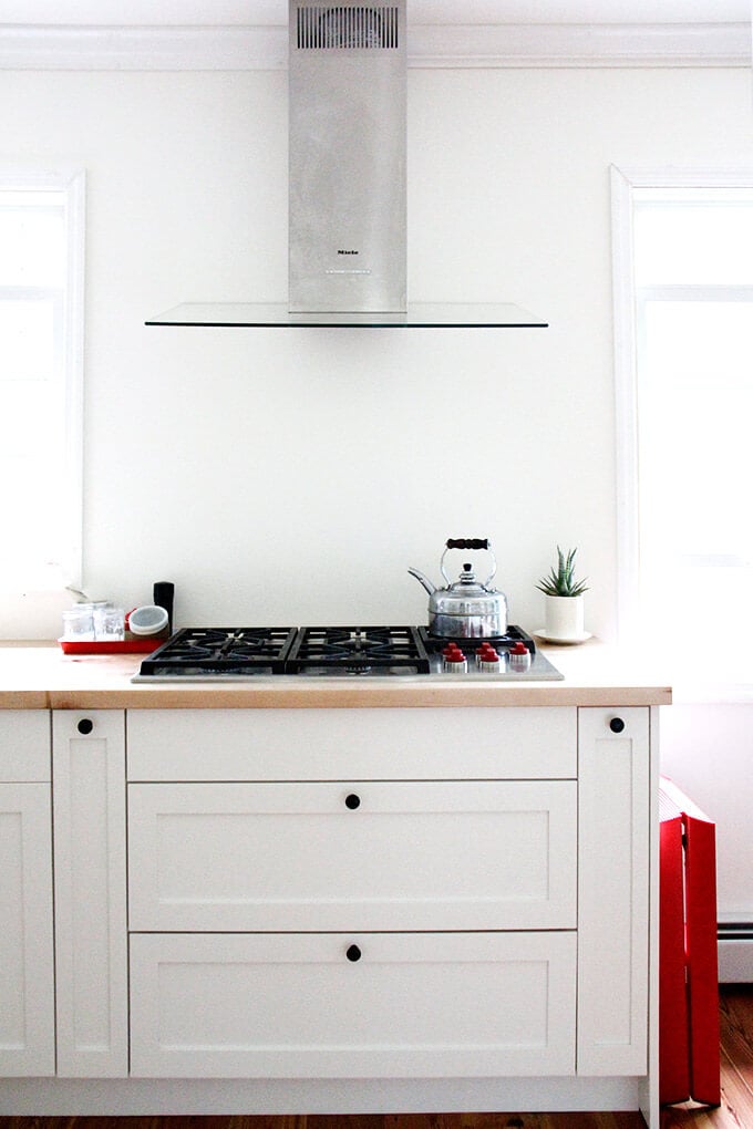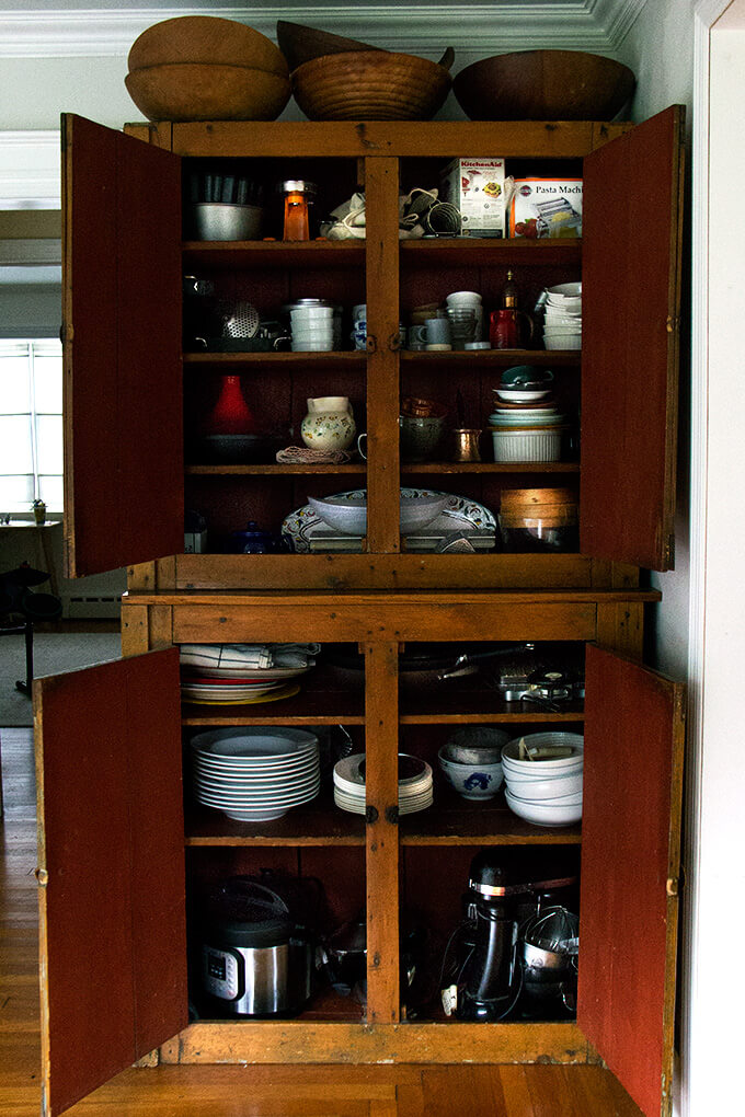 My kitchen, no matter its state, feels empty when these two jars are not filled. On the left: Bircher muesli, which Ben and I eat every day for breakfast. On the right: granola, which my kids eat every day for breakfast. (Incidentally, I recently added notes to this recipe because we go through it so quickly: make a double batch, use grapeseed oil, decrease the oven temperature, bake longer, don’t stir …)