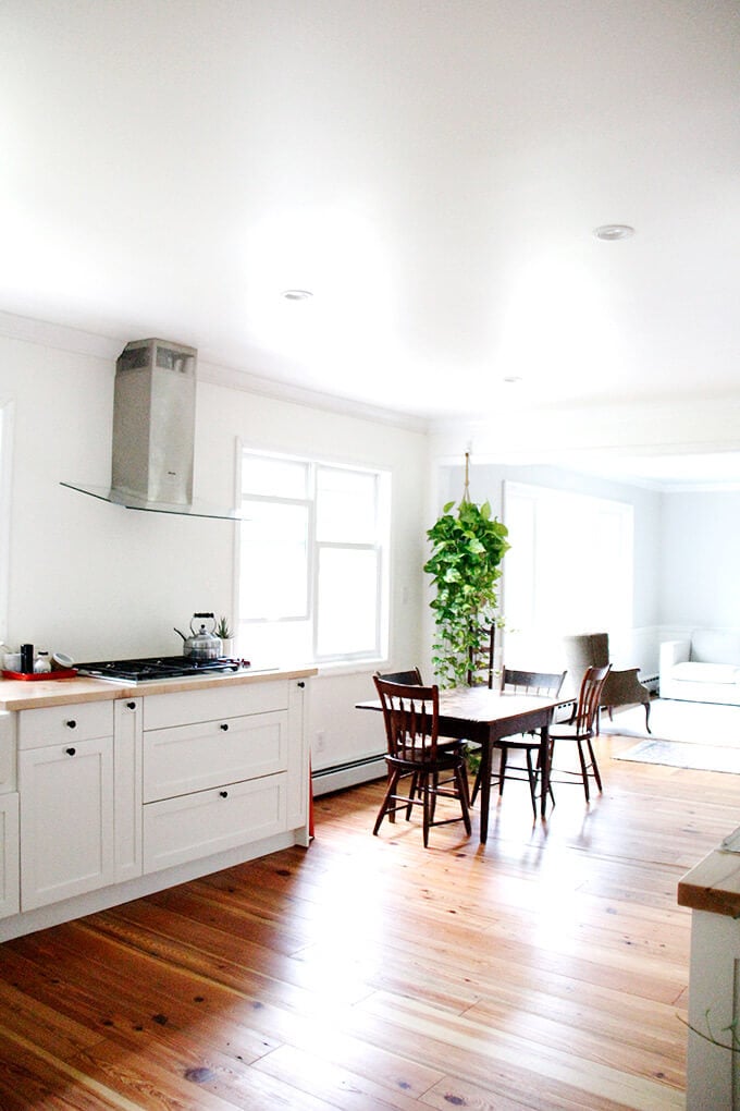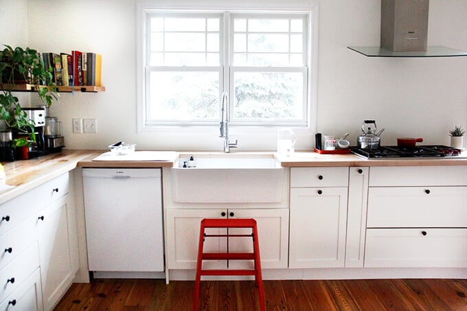 2. Butcher Block countertops: I had heard mixed things about butcher block counter tops, too — that you can’t put anything too hot on them; that you can’t cut on them; that, especially around the sink, mold will destroy them. The thought of mold worried me a bit, but after learning that Alexander Butcher Block (local company to me, Troy, NY) installs sink cut outs every single day and that in all the years they’ve been in business, they’ve never had an issue, I was sold. I’m so happy with my decision. For one, I’ve never had countertops that I could put hot pans on anyway, so there was no change for me there. Second, I wouldn’t want to cut directly on the countertops anyway. Third, I absolutely LOVE them. They make the kitchen feel so warm and peaceful. So far they look as good as new—it’s been about 8 months.