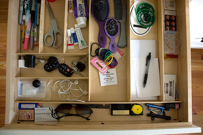 We even use it for our junk drawer to organize the chaos … everyone keeps a tube of Desitin in the kitchen, right?