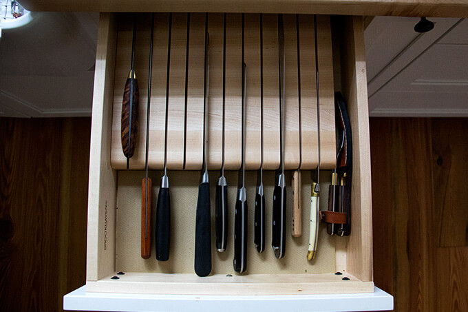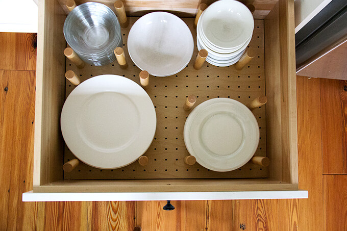 Re pots and pans: I should take some more photos. I have three relatively deep drawers that fit the bulk of my pans. Will try to update this post soon with those photos. I do store some pots/pans —the especially large ones— in the basement.