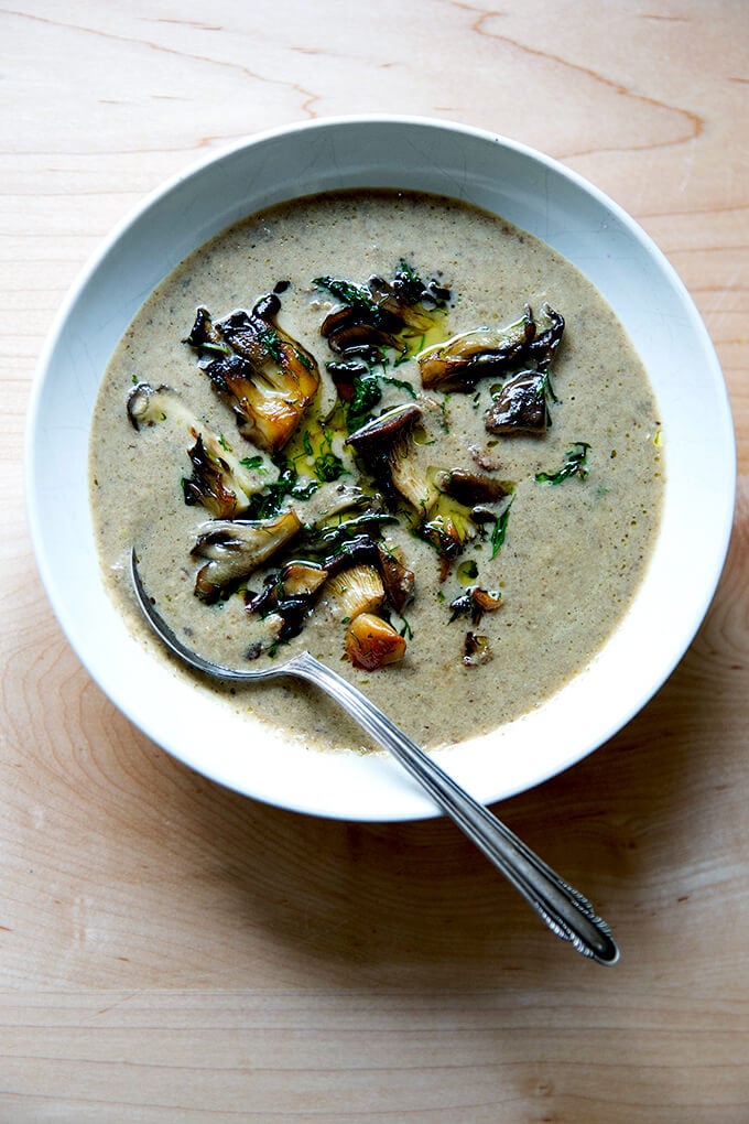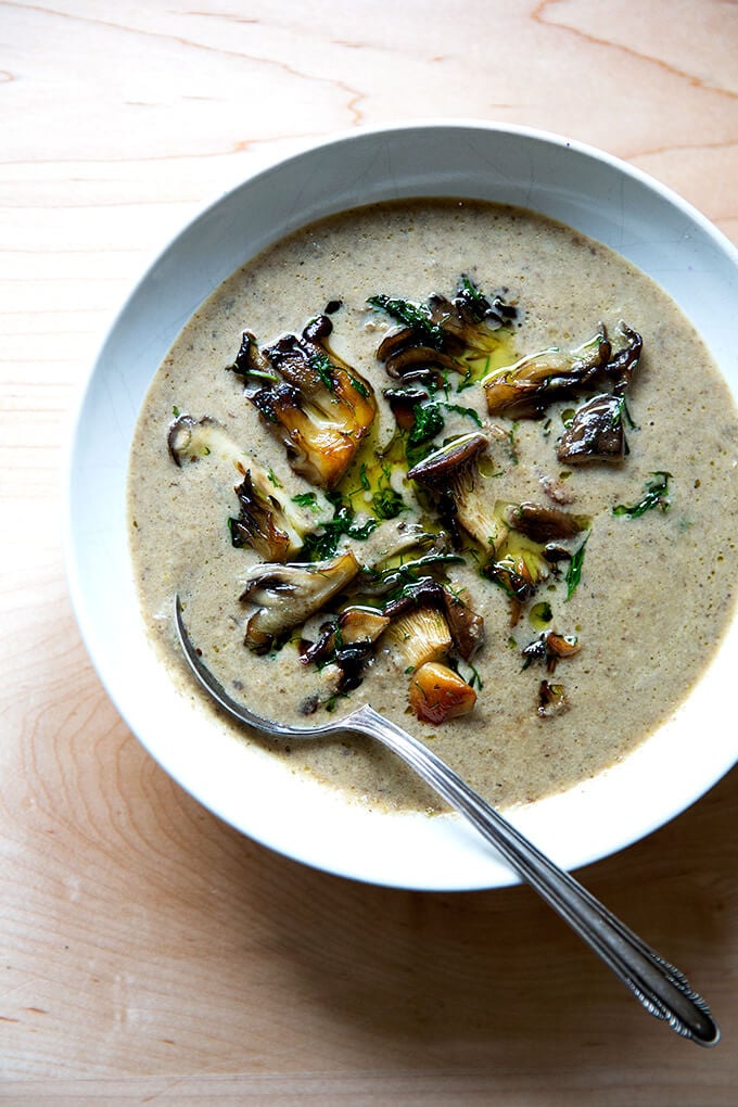 No regrets. Get the recipe here: Balthazar Cream of Mushroom Soup.