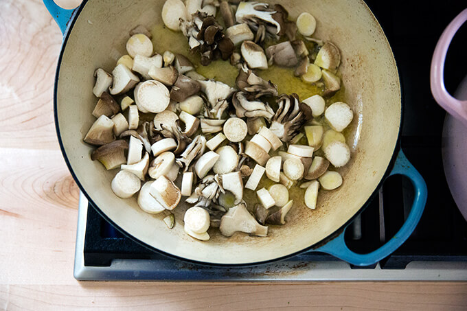 … a garnish helps. For fun, I sautéed some king and hen of the wood mushrooms to liven up the creaminess.