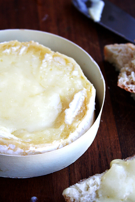 - One 8-ounce round Camembert cheese, in its wooden container, any paper labels from the front or sides removed