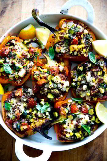 Roasted Poblanos Stuffed with Corn, Quinoa, and Monterey Jack